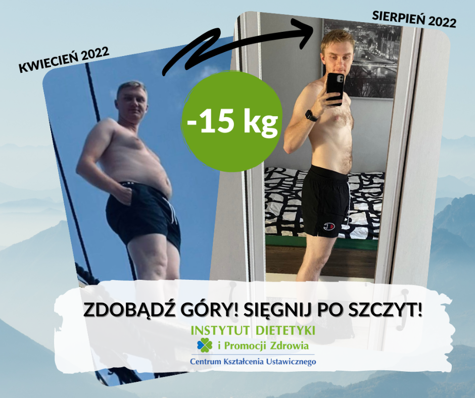“Dietę pod opieką Pani Kasi rozpocząłem w maju tego roku, z wagą wyjściową 87,5 kg. Okazało się, że 3,5 miesięczny czas diety nie był okresem wyrzeczeń, a ciekawą przygodą poznawania nowych smaków i uczenia się właściwych i przede wszystkim zdrowych nawyków żywieniowych. Zrzucenie zbędnych 15 kg wpłynęło na lepszy wygląd sylwetki oraz samopoczucie. Na całym procesie odchudzania zyskałem zarówno ja, jak i moja rodzina gdyż w naszym jadłospisie goszczą teraz tylko zdrowe i wartościowe produkty. Z całego serca polecam Panią Kasię – jej profesjonalizm i podejście do pacjenta sprawia, że dieta to prawdziwa przyjemność”.