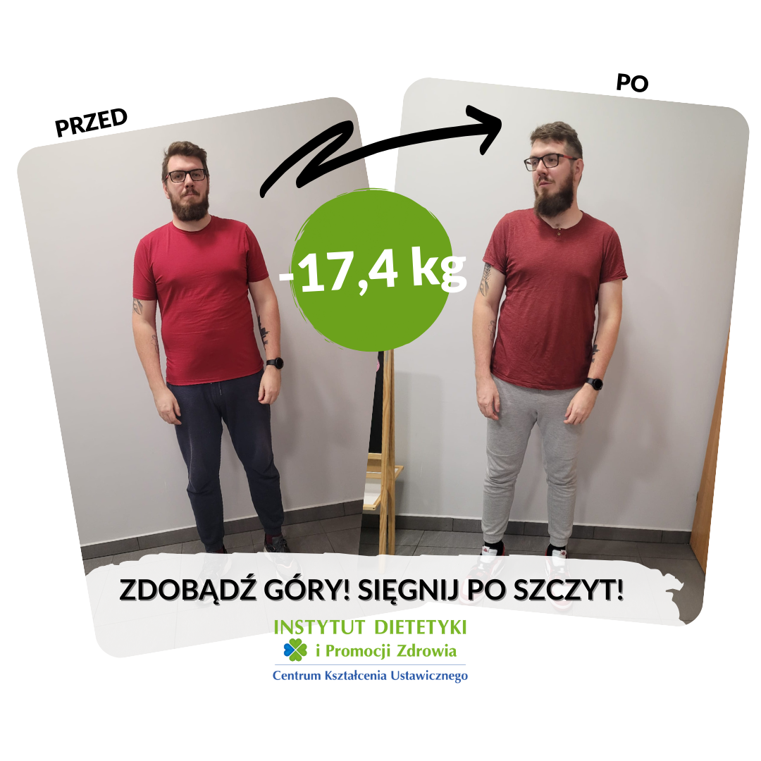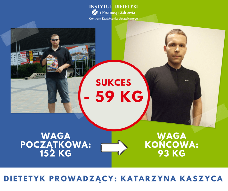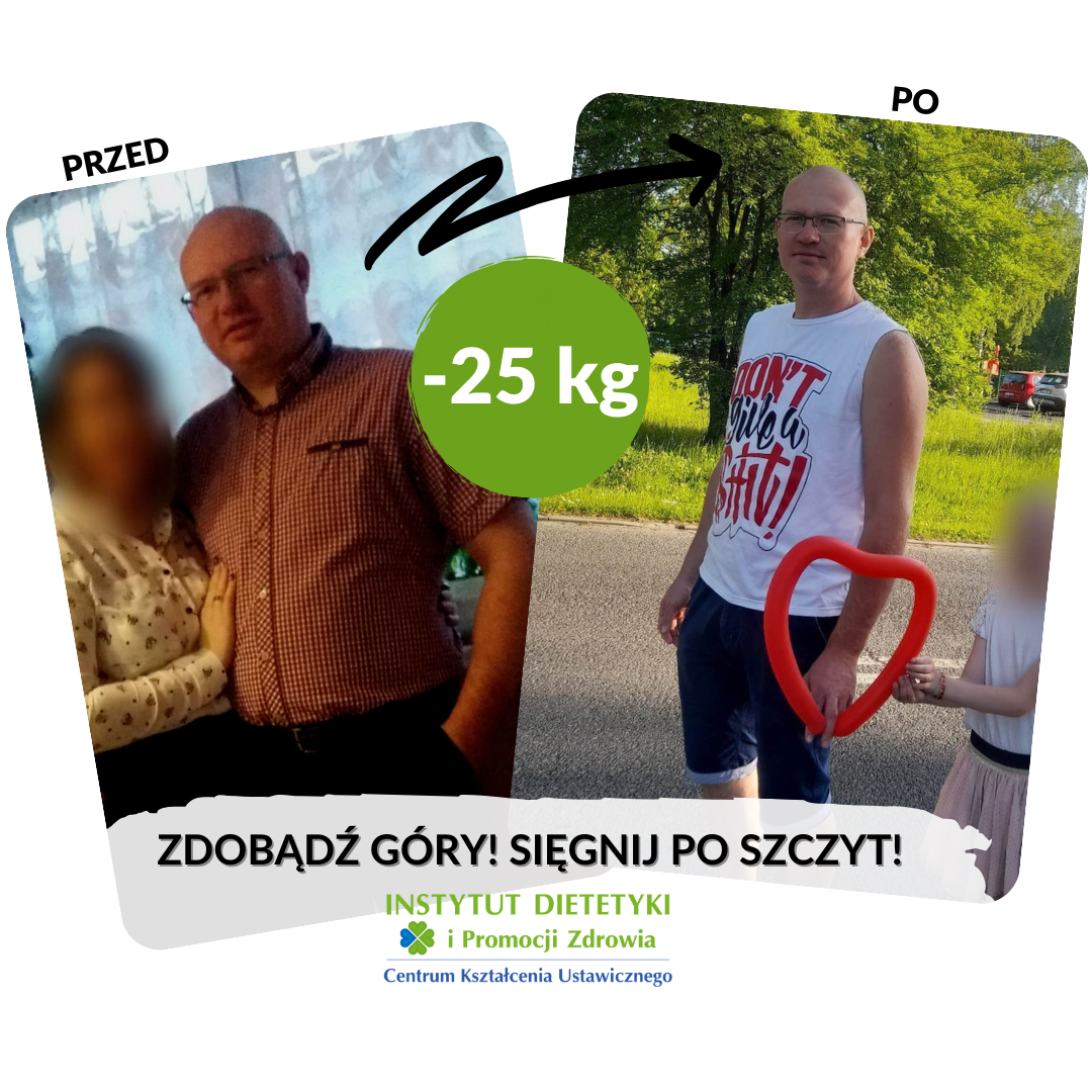 Moją przygodę z odchudzaniem rozpocząłem w październiku 2019 roku samodzielnie. Po 9 miesiącach mizernych efektów w postaci spadku masy z 124 kg na 119 kg w czerwcu 2020 roku po namowach żony, zgłosiłem się do Pani Kasi. Od czerwca do grudnia 2020 roku udało mi się zredukować masę ciała do 94 kg. Menu w diecie ustawione było pod moje ulubione produkty i było łatwe w przygotowaniu dzięki czemu „bycie na diecie” nie było zbytnio uciążliwe. Jeśli chodzi o obsługę klienta to zawsze podczas moich wizyt w Instytucie była na najwyższym poziomie.