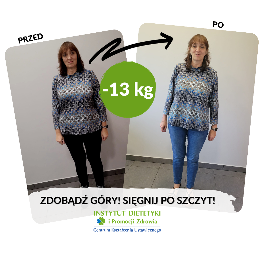 Pani Beata bardzo się starała, cierpliwie i wytrwale dążyła do celu i ważne dla niej było też wypracowanie zdrowych nawyków żywieniowych na zawsze 🥑🍊🍏 Początki są trudne, ale Pani Beata samodzielnie przez nie przeszła, świetnie sobie poradziła. Tak naprawdę kiedy się poznaliśmy, to wspólnie dokończyliśmy proces odchudzania, by dojść do wyznaczonego celu 🤷 Pani Beata przyszła do nas z problemami zdrowotnymi, głównie z insulinoopornością. Wielu z Was wie, że insulinooporność może mocno komplikować proces odchudzania, ale Pani Beata bardzo cierpliwie i starannie dążyła do celu 📝