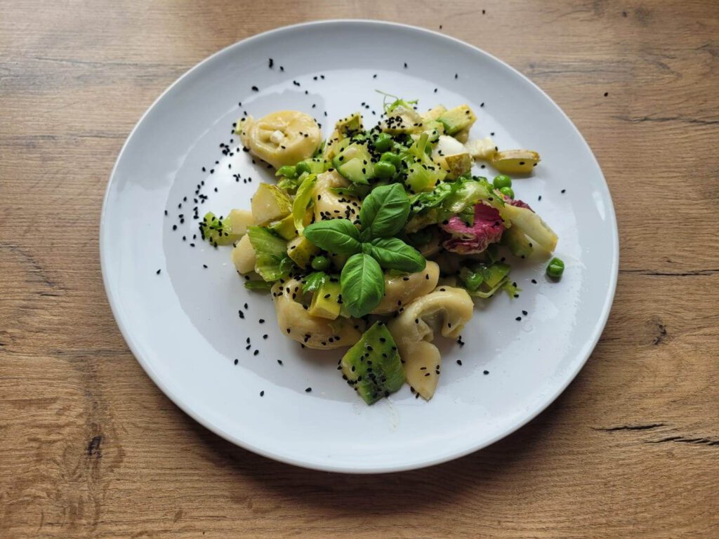 Zielona sałatka detoks Składniki na 2 porcje: Mix sałat Tortellini - u mnie z ricotta i szpinakiem z Lidla  Ogórek zielony Awokado Gruszka Seler naciowy Jajko ugotowane na miękko Olej lniany lub oliwa z oliwek Sól, pieprz Nasiona czarnuszki  Wartość Energia: 500...