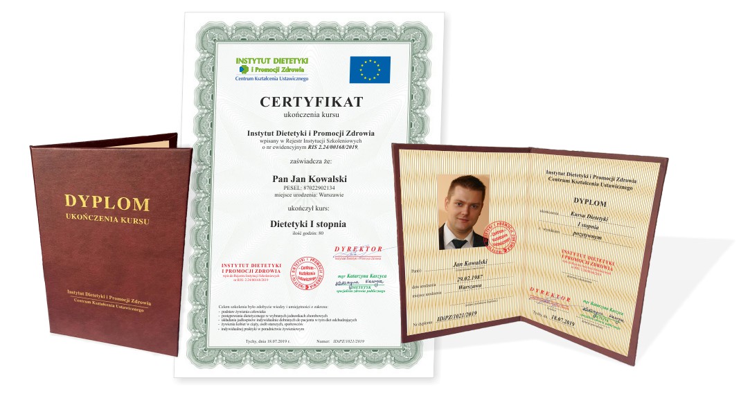 Po ukończeniu kursu otrzymujesz certyfikat oraz dyplom ze zdjęciem potwierdzający ukończenie kursu.