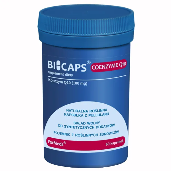 Bicaps Coenzyme Q10 zawiera 100 mg koenzymu Q10. Czysty skład – produkt nie zawiera m.in. sztucznych wypełniaczy, przeciwzbrylaczy i barwników. Naturalna, wegańska kapsułka z pullulanu – pozyskiwanego w procesie fermentacji. Pojemnik wytworzony z użyciem roślinnych surowców. Produkt odpowiedni dla wegetarian i wegan.
