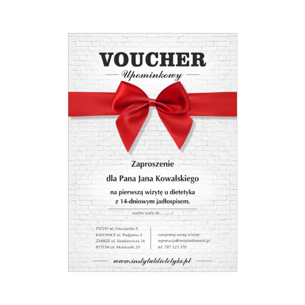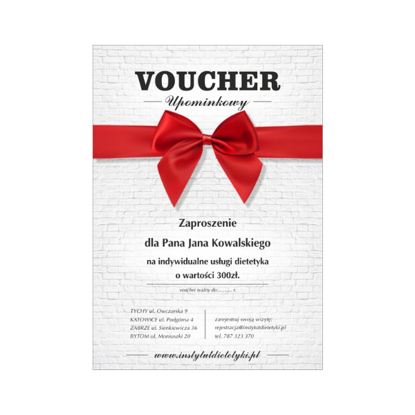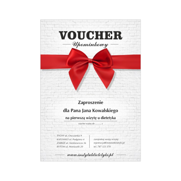 To ważne dni, nie zwlekaj, tylko zamów VOUCHER – to idealny prezent. Wraz z nim podarujesz swoim najbliższym profesjonalną opiekę dietetyka i zachęcisz do zadbania, o swoje zdrowie. Czy to nie najlepszy sposób na okazanie im miłości? Z pewnością w ten sposób pokażesz, jak dużą miłością ich darzysz i docenią to, jak o nich dbasz!